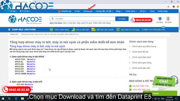 Bước 1: Bạn vào website hacode.vn để tải driver của máy in bill Dataprint E5 về