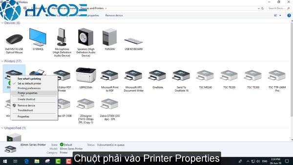 Bước 9: Bạn bấm chuột phải vào driver, chọn Printer Properties
