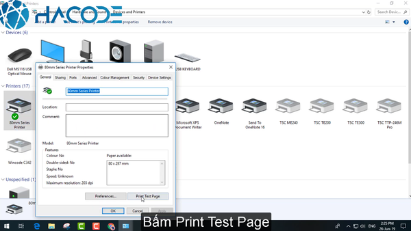 Bước 11: Bạn chuột phải vào driver để vào lại Printer Properties. Tại tab General, bạn bấm vào nút Print Test Page để in ra trang bill test