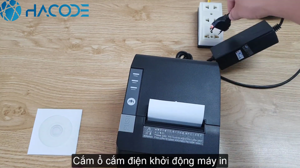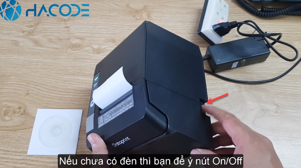 Bước 7: Bạn cắm dây nguồn vào ổ điện để cấp nguồn cho Dataprint E5 hoạt động