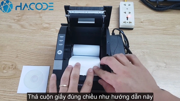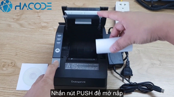 Bước 3: Bạn lắp giấy in bill vào máy in Dataprint E5 như trong hình