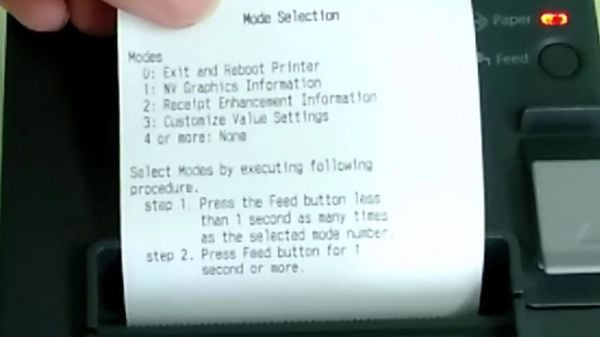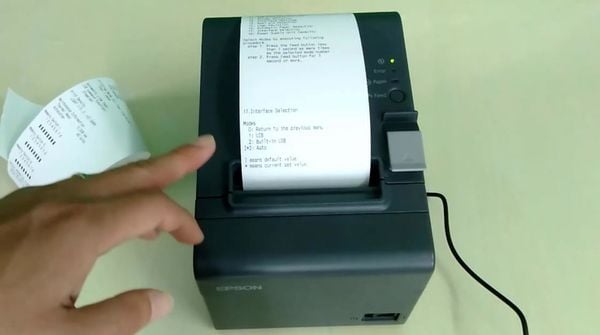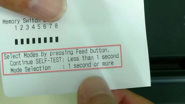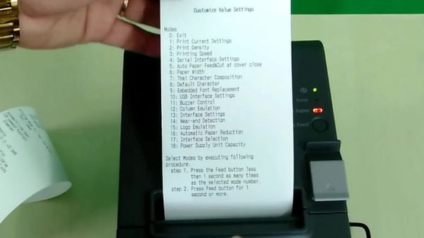 Mode Selection: 1 second or more (Bạn giữ nút Feed để máy in ra bill chỉ dẫn các lựa chọn khác)