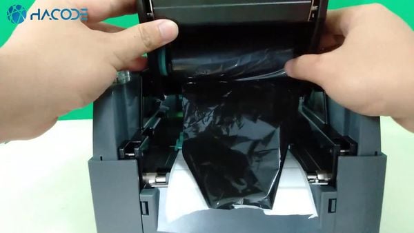 Một là, trước khi quấn ruy băng mực, bạn nên dùng 1 hoặc 2 con tem dán ruy băng cố định vào trục thu hồi mực. Như vậy, khi máy in hoạt động thì ruy băng mực sẽ không bị tuột ra khỏi trục thu hồi mực.