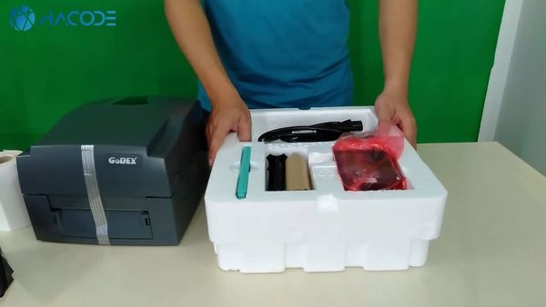 Đầu tiên, bạn lấy máy in Godex G500 và khay xốp chứa các phụ kiện của nó ra khỏi hộp.