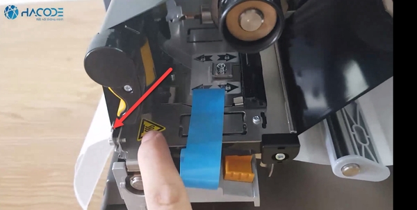 Bước 3: Đóng chặt khóa theo hướng mũi tên bên dưới rồi đậy lắp máy in mã vạch