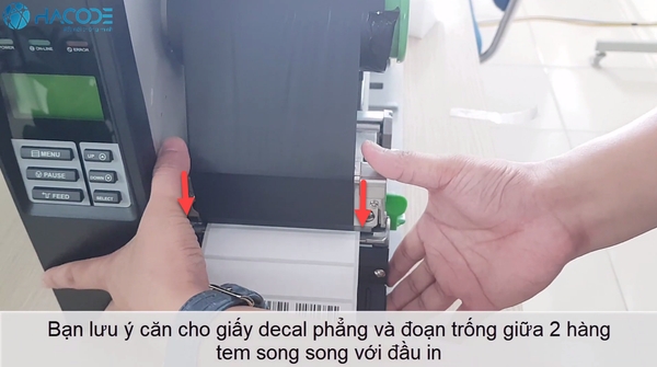 Lắp giấy decal theo hướng mũi tên bên dưới và mặt có tem nhãn hướng lên trên