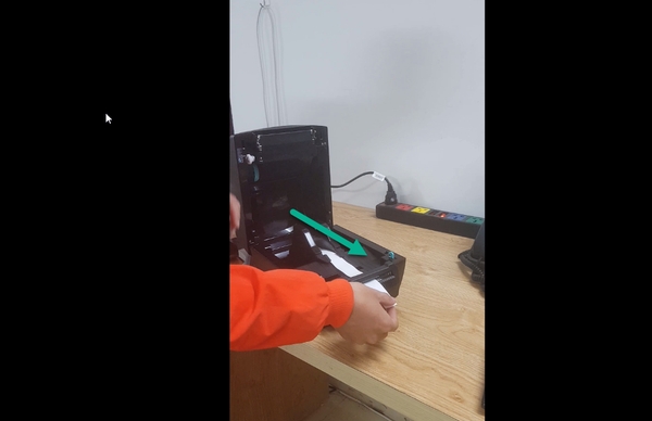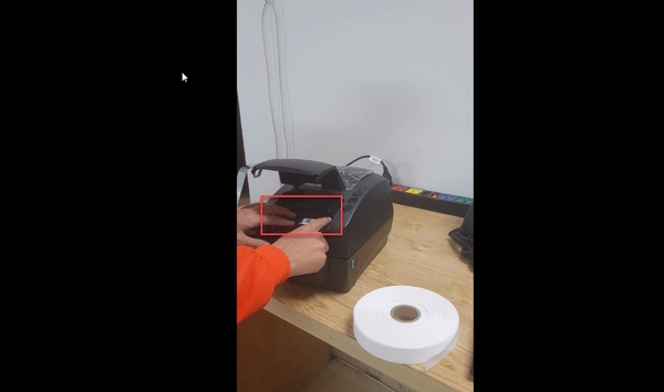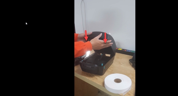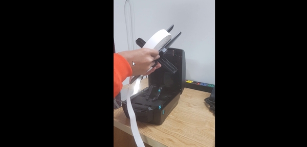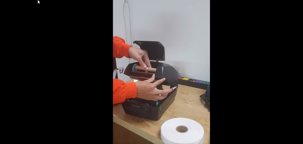 Lắp lõi cuộn mực thừa ở phía trên máy. Cách lắp cũng tương tự như lắp cuộn mực