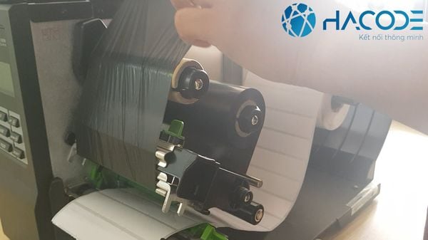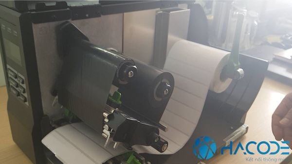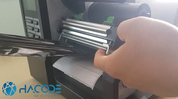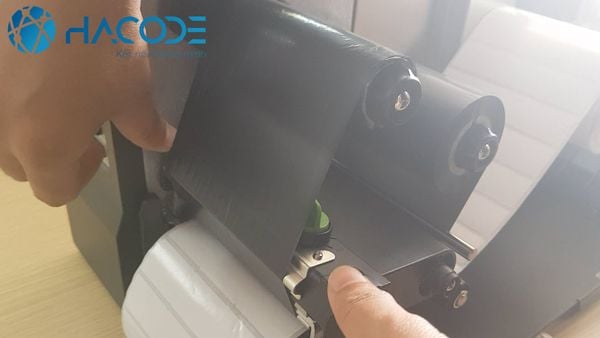 Bước 13: Luồn ruy băng mực đi phía dưới đầu in của máy