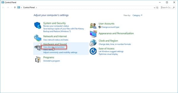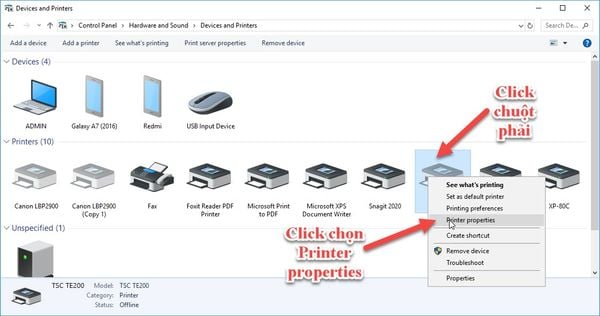Vào Control Panel ---> View devices and printers