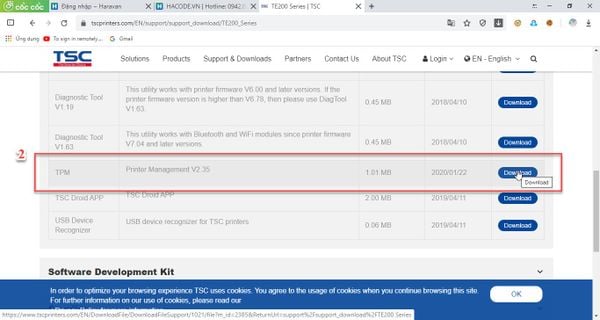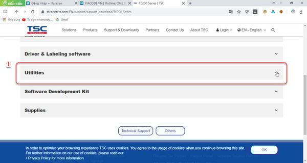 *B1: Truy cập vào https://www.tscprinters.com/EN/support/support_download/TE200_Series