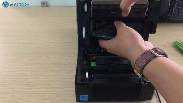 Bạn kiểm tra lại ruy băng mực, điều chỉnh lại lần nữa để đảm bảo ruy băng mực được căng, không bị nhăn trước khi máy in hoạt động.