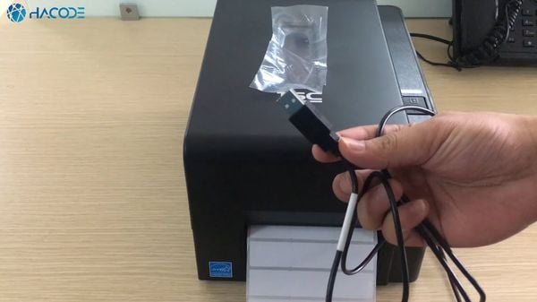 Sau đó bạn cắm dây nguồn vào ổ điện và bật nút nguồn ở phía sau máy lên. Cắm đầu còn lại của dây cáp USB vào cổng USB trên máy tính. Như vậy là máy in TSC TE200 đã sẵn sàng hoạt động.