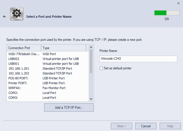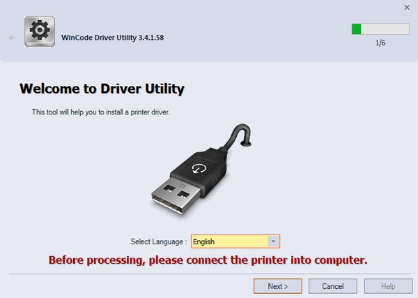 Bước 03: Kết nối máy in với máy tính bằng cáp USB / RS-232 / LPT rồi nhấn biểu tượng Next >