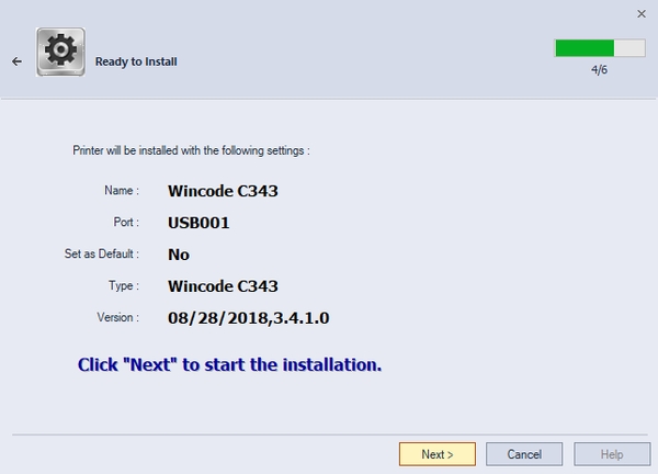 Bước 06: Xác nhận lại các thông tin máy in của bạn sau đó nhấn Next > để tiến hành cài đặt