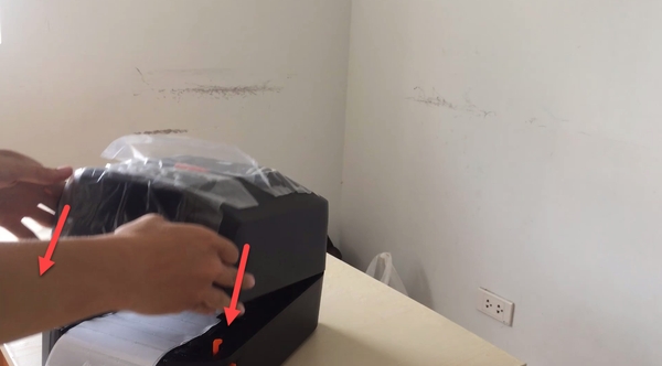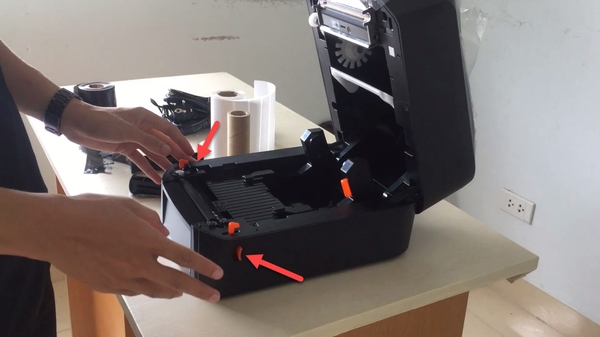 2 tay ấn đều 2 bên của lắp máy in xuống