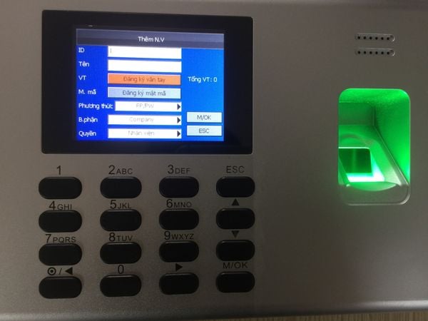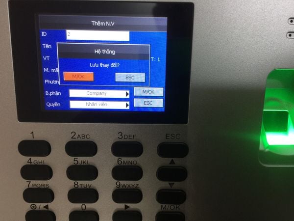 Nhấn M/OK để lưu vân tay nhân viên rồi đăng ký tiếp cho nhân viên tiếp theo làm tương tự.