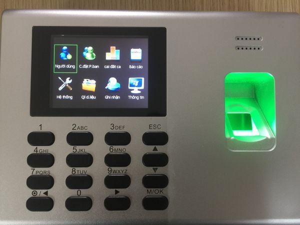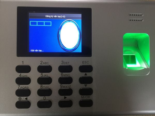 Nếu đăng ký ngón tiếp theo thì nhấn M/OK đặt ngón tay khác vào 3 lần. Đăng ký xong 1 nhân viên nhấn nút ESC màn hình máy sẽ hiện ra như sau: