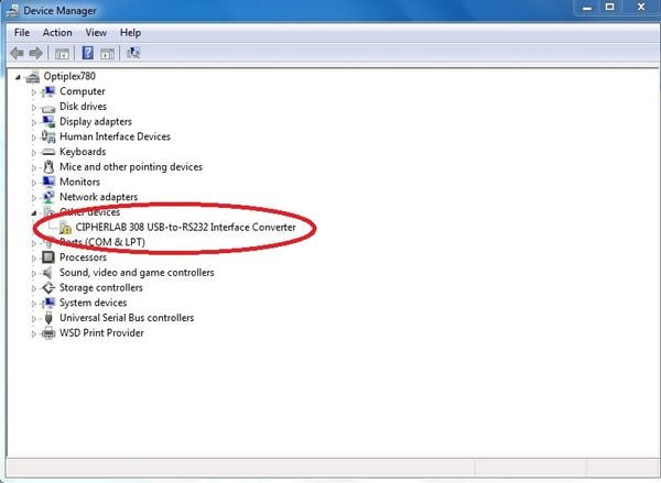 Bước 1: Trước khi cài Driver 8000L/C trên máy tính ta cắm đốc chuyển dữ liệu vào cổng USB trên máy tính. Trong Device manager sẽ báo thiết bị mới chưa được cài.