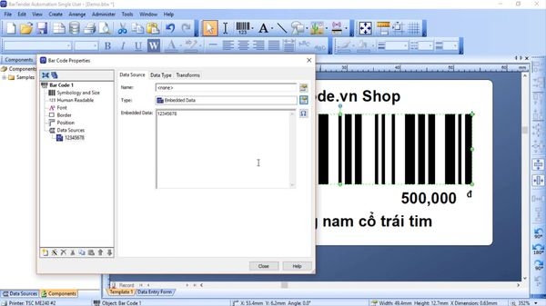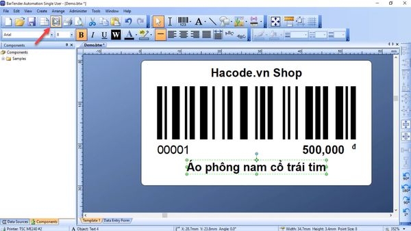 B8: Bạn cần xác định các đối tượng trên file Bartender xem đối tượng nào cần liên kết dữ liệu với file Excel.