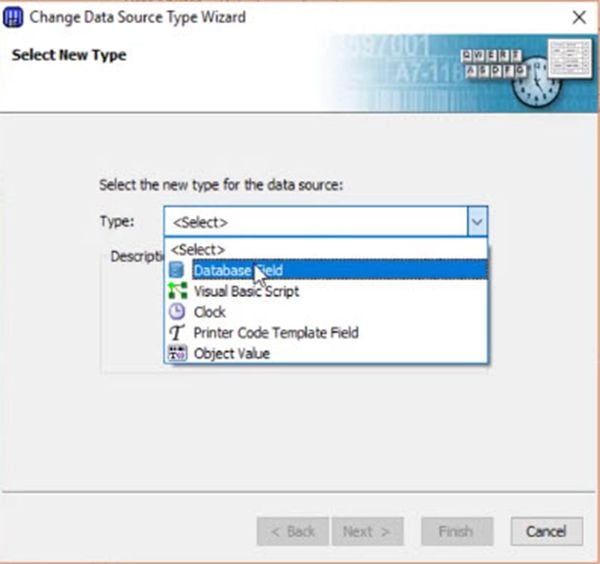 B11: Chọn kiểu của nguồn cấp dữ liệu là "Database Field" và bấm Next để sang bước tiếp theo.