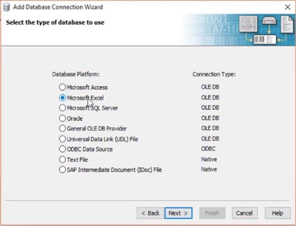 B4: Bạn chọn kiểu cơ sở dữ liệu là Microsoft Excel rồi bấm Next